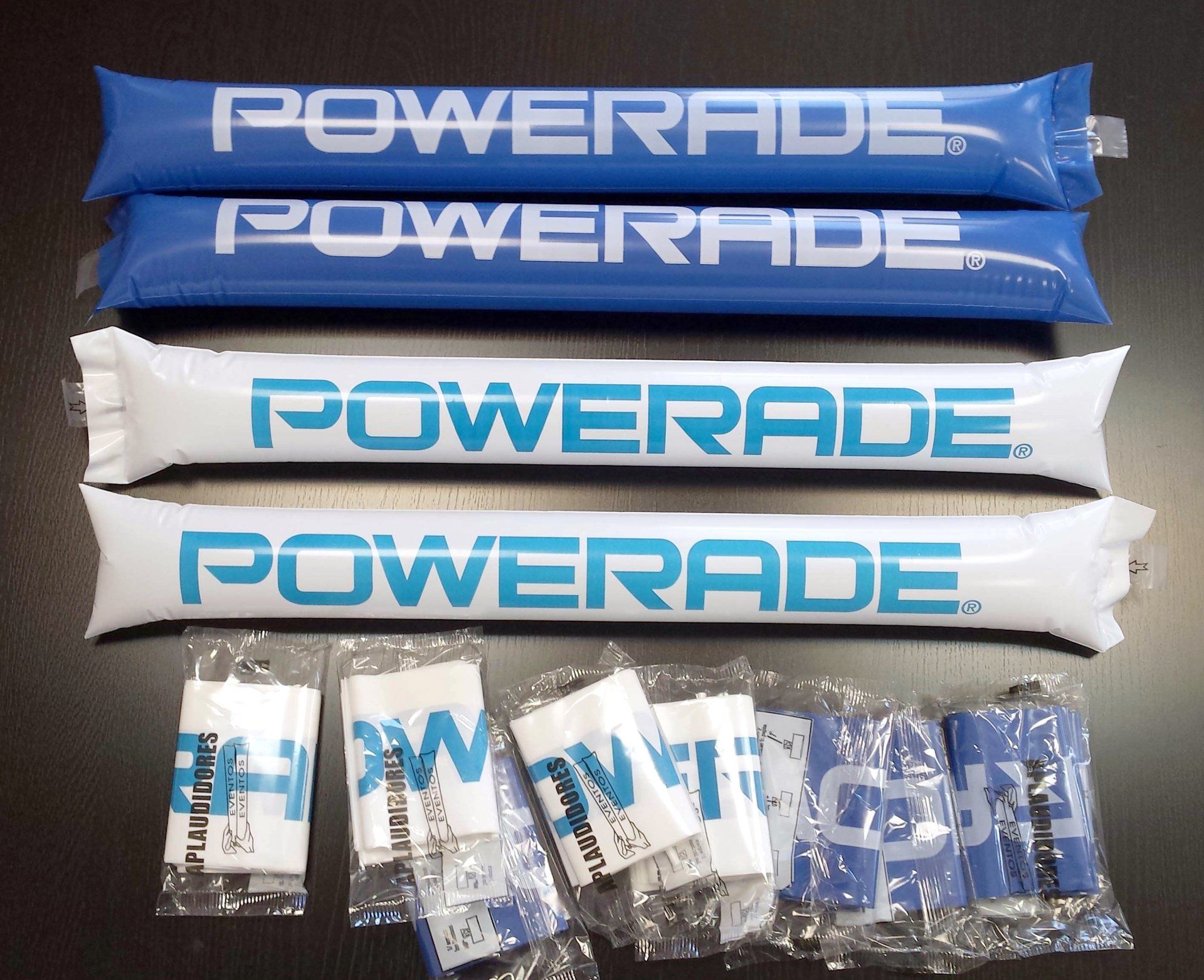 Fabricados en polietileno 100% Impresos o en colores en stock. Embolsados por parejas con pajita para hinchado incluida. También en formato clapper en cartulina para mosaico y posterior utilización como aplaudidor.
